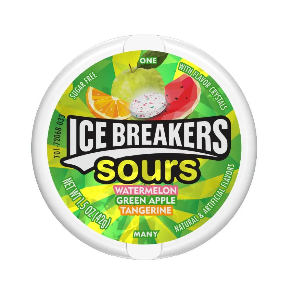 • Pastillas Ice Breakers Sours Watermelon, Green Apple y Tangerine 42g x 8u